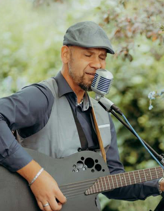 Gib ihm eine Gitarre und ein paar Minuten Zeit – und Dein Wunschsong wird sehr wahrscheinlich umgesetzt. Rock ist sein Welt, und so bekommt mancher Song ein neues, unverwechselbares Gewand. Mit einer Range von über 3 Oktaven ist nahezu alles möglich – von Abba bis Zeppelin.